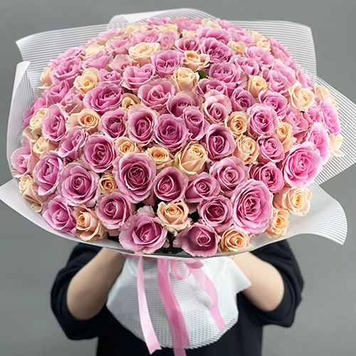 Букет из 101 пастельной розы Аваланж микс (60 см)