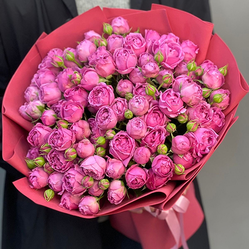 Букет из 17 кустовых пионовидных роз Мисти Баблз (50 см)