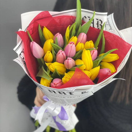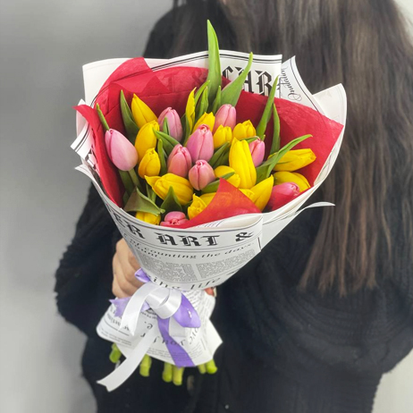 Букет из 27 тюльпанов яркий микс