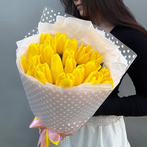 Букет из 25 желтых тюльпанов в нежной упаковке