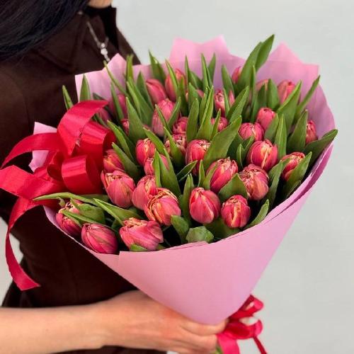 Букет из 35 пионовидных тюльпанов Колумбус с бантом