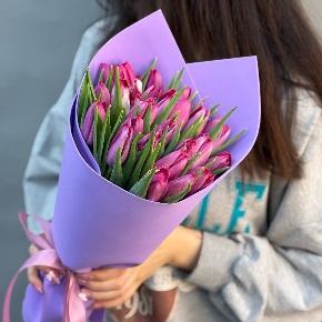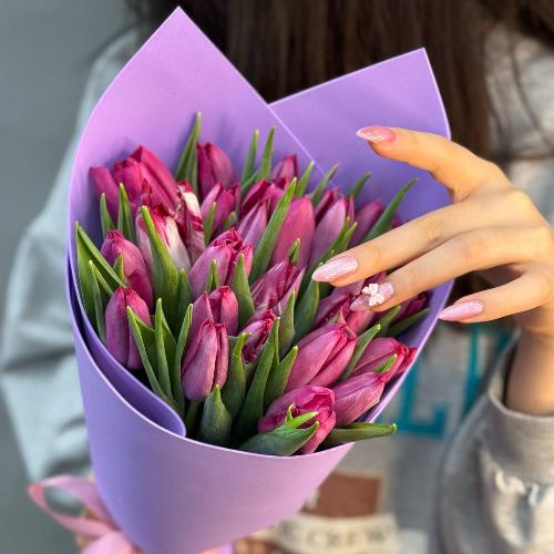 Букет из 25 малиново-фиолетовых тюльпанов