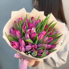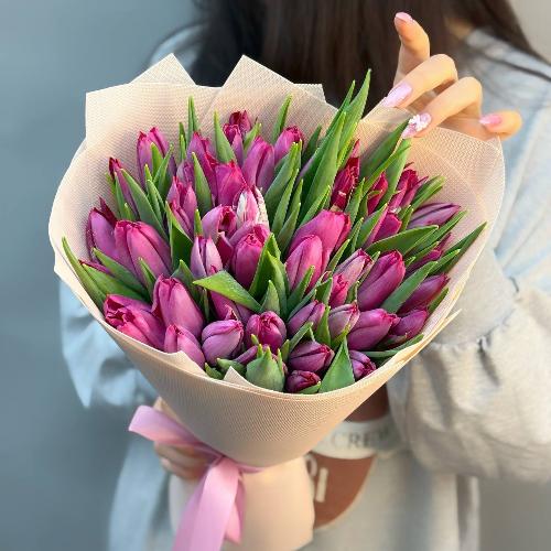 Букет из 49 малиново-фиолетовых тюльпанов