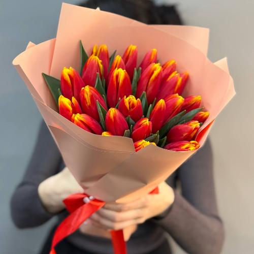 Букет "Фламинго" из 25 ярких тюльпанов